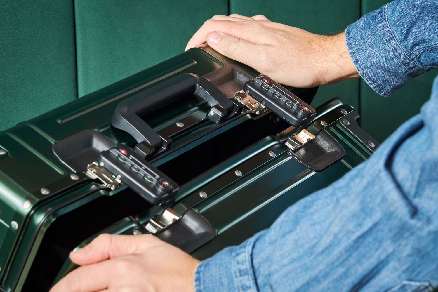 Slow release functionality on the top handle to protect your case and add a touch of luxury